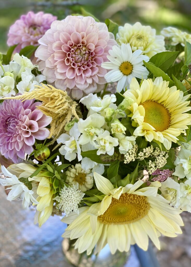 Reserve a bucket of blooms for your special party or event. Each bucket is filled with a mix of focal flowers, fillers and greenery. Depending on the size of your arrangements a bucket will make 4-6 bouquets. Let us know if you have a color scheme and we will do our best to accommodate, but can not guarantee specific flowers.